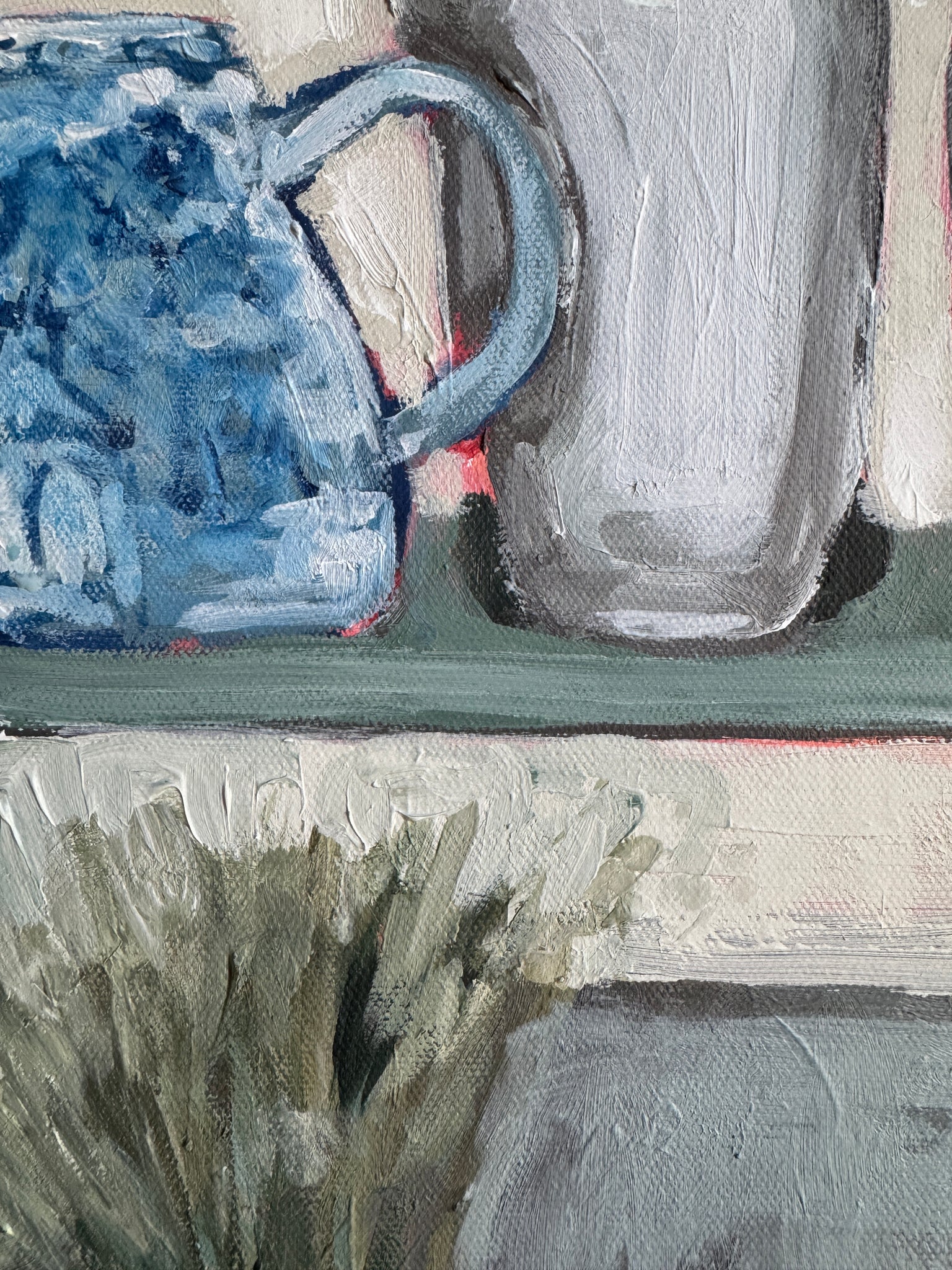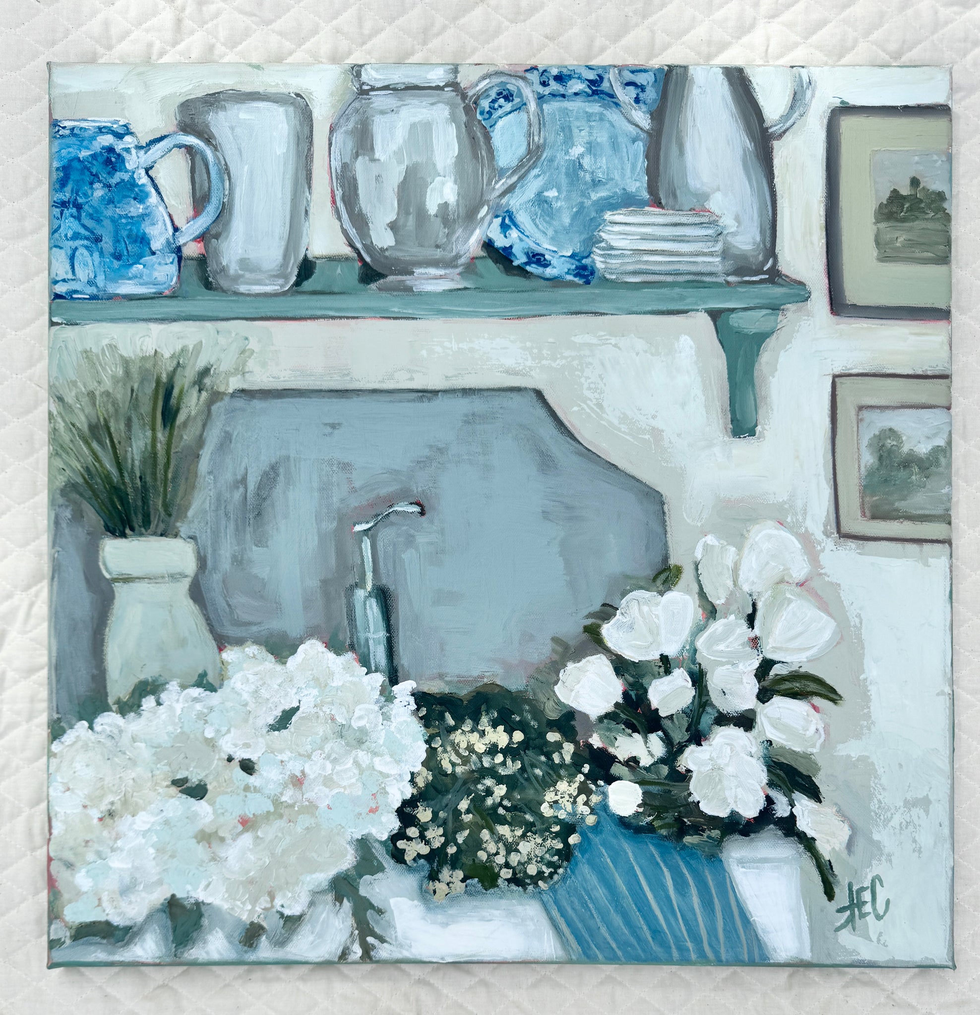 Mixed media work painted on gallery wrapped canvas and sealed with a matte varnish. Ready to hang with finished edges or select a framing option.