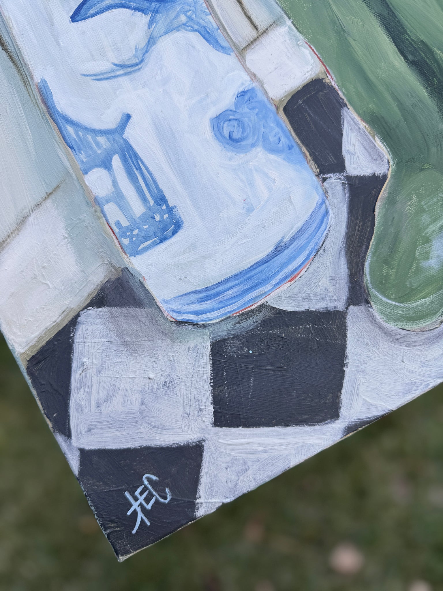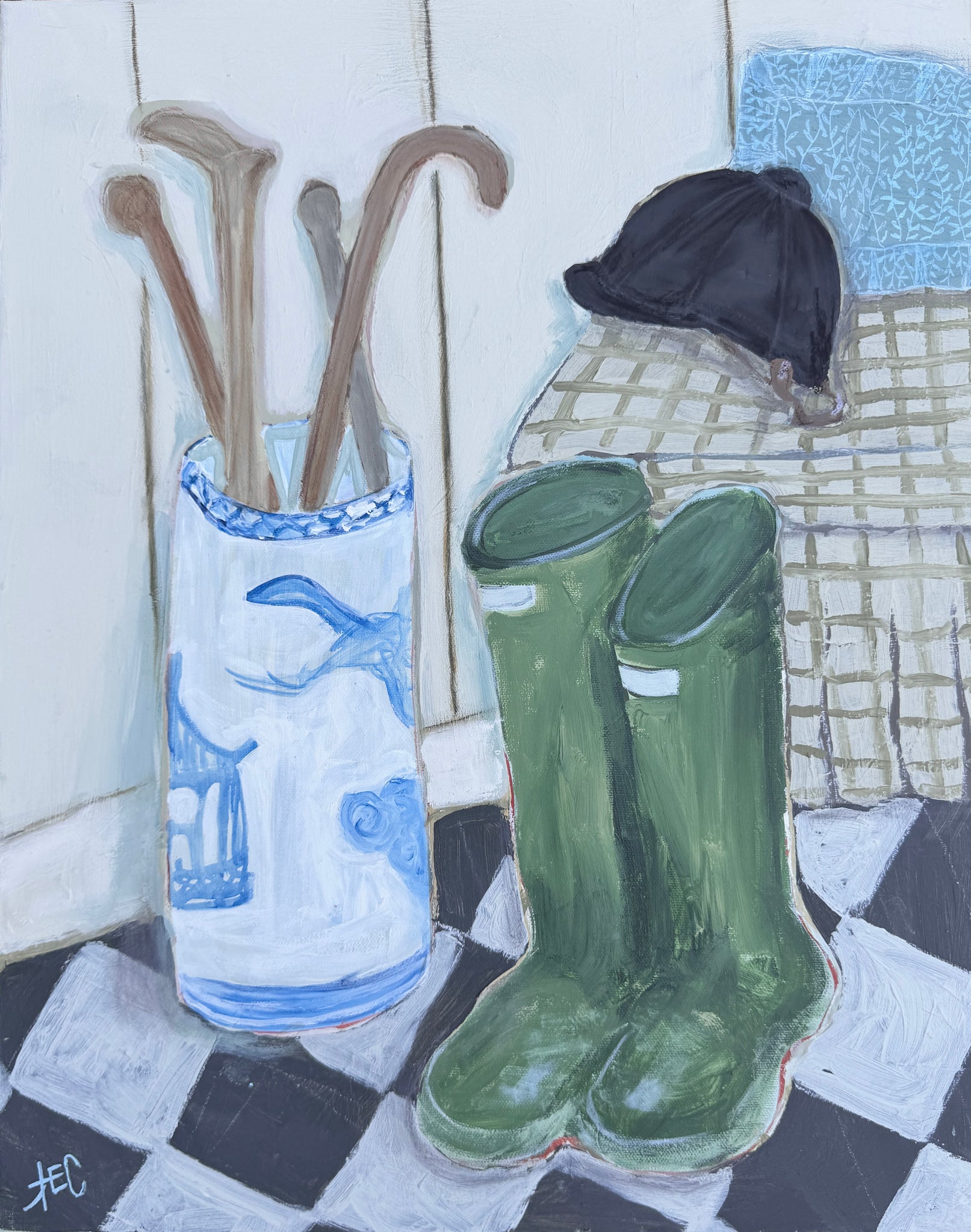 Mixed media work painted on gallery wrapped canvas and sealed with a matte varnish. Ready to hang with finished edges or select a framing option.
